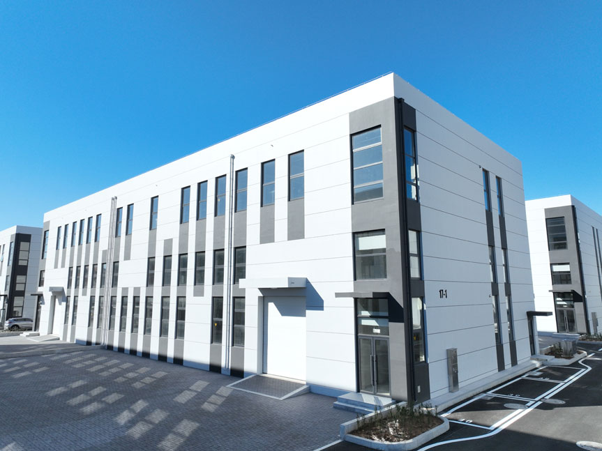 项目均为二层框架结构厂房,一层层高8.1米,二层层高4.5米,消防品级为丙类二级,楼板荷载800KG/㎡,配电容量100W/㎡。其中双拼厂房8栋共16套,单户面积约720㎡和1026㎡;独栋厂房2套,单户面积574㎡、720㎡。阔赠私家大院,尽享独门独院,给入驻企业带来便当、舒适的生产办公空间。